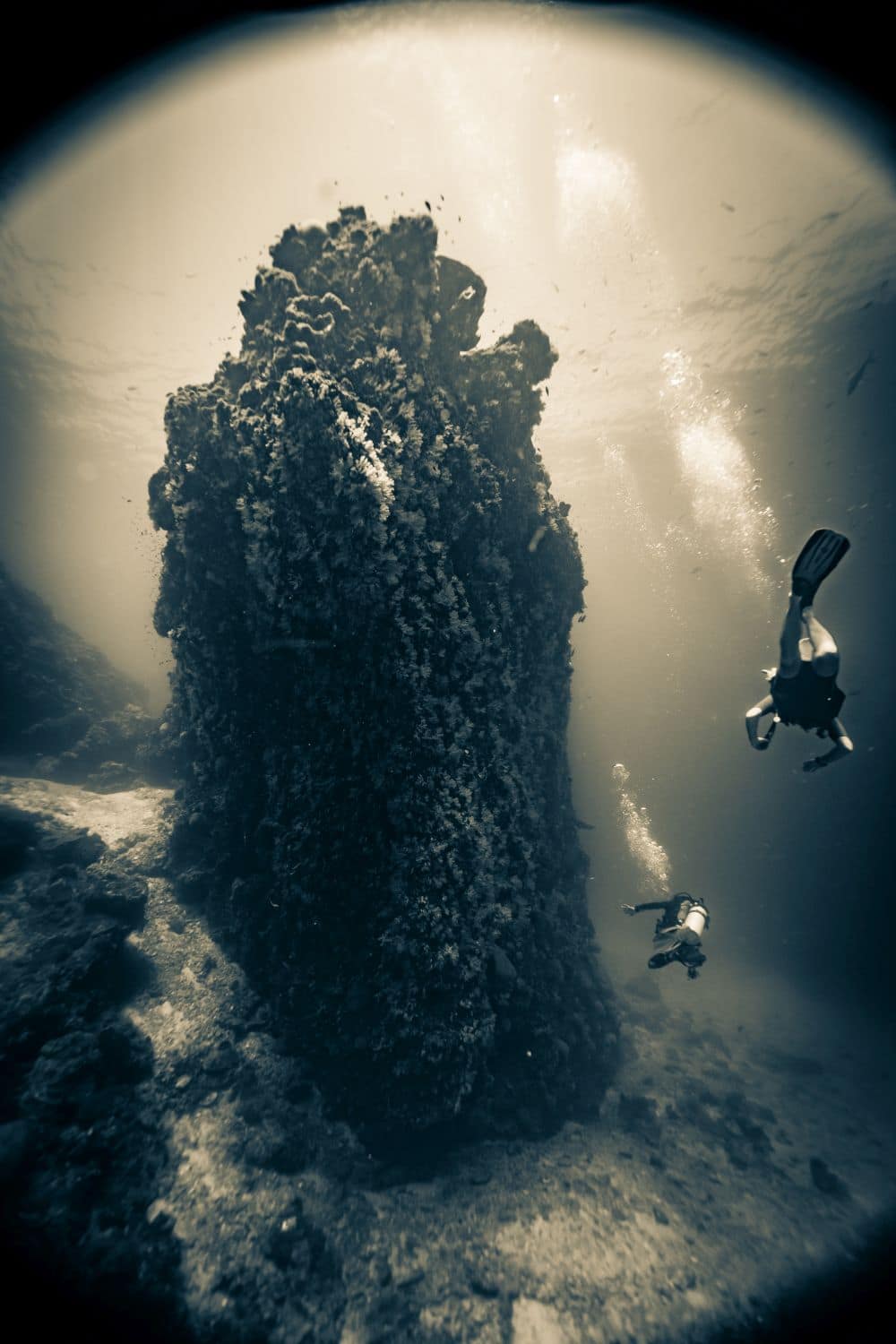 Einer der bekanntesten Tauchplätze auf den Similan Islands ist der Richelieu Rock, ein freistehender Felsen im offenen Meer, der wie ein Magnet für viele Arten von Meeresbewohnern ist und eine fantastische Kulisse für Unterwasserfotografie bietet. Tagein, tagaus umkreisen riesige Schulen von Fischen den Felsen, ganz gleich ob Barrakudas, Makrelen, Thunfische oder Fledermausfische.
